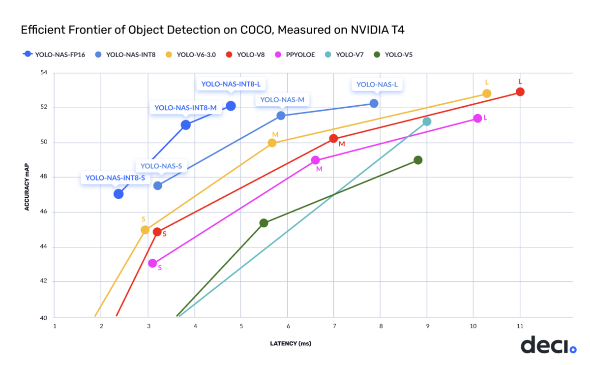 YOLO-NASが2023年5月にリリースされました。YOLO-NASは、比類のない精度と速度のパフォーマンスを備えた最先端のパフォーマンスを提供し、YOLOv5、YOLOv6、YOLOv7、YOLOv8 などの他のモデルを上回ると唱っています。