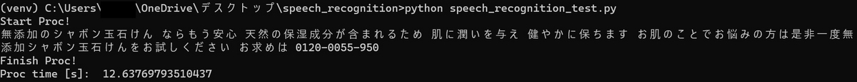 まずは、音声データ(.wav)を用いて音声認識を実施します。音声データサンプルは下記ページの「CM原稿(せっけん)」を使用させていただきました。