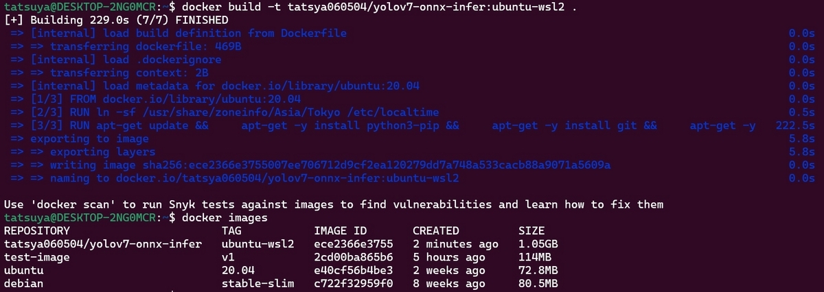 実行すると下図のようにコンテナイメージが生成されます。
